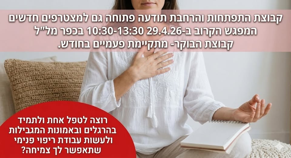 תשמעו איזו הצעה נהדרת קבוצת התפתחות רוחנית- והרחבת התודעה - עשרה המפגשים מסע אישי מרתק ביותר, מפתח אינטליגנציה ריגשית ופורה ! …